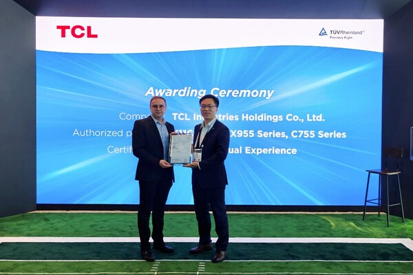 拉斯维加斯2024年01月11日 /新闻稿网 - Xinwengao.com/ — 当地时间1月9日,国际独立第三方检测、检验和认证机构德国莱茵TÜV大中华区(以下简称"TÜV莱茵")在国际消费类电子产品展览会(International Consumer Electronics Show,CES)上,为TCL实业控股股份有限公司(以下简称"TCL实业")研发生产的旗舰电视——QD-Mini LED 4K电视X11G系列(型号85X11G)、X955系列(85X950、85X953KX2等135个型号)和C755系列(65C757X2、65C805GX1等263个型号)颁发TÜV莱茵"真实视觉体验"认证证书。 TCL实业全球产品运营中心总经理左波,TÜV莱茵电子电气产品服务全球副总裁郝福来(Frank Holzmann)、大中华区电子电气产品服务副总裁杨佳劼等双方代表出席了本次颁证仪式。 TCL旗舰电视获颁TÜV莱茵“真实视觉体验”认证证书 TÜV莱茵基于人眼感知真实色彩基础研究、用户视觉体验和各类应用场景,依据自研标准2 PfG Q2860/03.23要求,对TCL QD-Mini LED 4K电视X11G系列、X955系列和C755系列进行了峰值亮度、对比度、环境光对比度、DCI-P3色域、色彩容积、亮度均匀性、色彩均匀性、无频闪等显示效果相关维度的测试。结果表明,上述三大系列旗舰电视的显示效果高度适配人眼观看物体的实际效果,相关技术达到了国际领先水平。 TCL QD-Mini LED 4K电视X11G系列(上)、X955系列(左下)和C755系列(右下) 左波表示:"自2018年以来,TCL实业专注开发Mini LED技术,历经三代技术革新,已跻身成为Mini LED电视行业的领导者,并于近年成功推出QD-Mini LED电视产品。我们希望借助该项技术带来高度精确的局部调光,同时利用量子点矩阵控光技术让我们的电视产品更智能,为用户提供真正意义上的光滑、均匀、明亮、高性能背光电视,确保观影的舒适感。很高兴我们三个系列的QD-Mini LED 4K电视产品通过了TÜV莱茵‘真实视觉体验’认证,进一步巩固了我们在大屏旗舰电视和Mini LED显示技术的领军地位。未来,我们期待与TÜV莱茵开展更广泛的合作,让全球用户都可以体验到来自中国的巅峰音画,让‘中国高端制造’迈上更广阔的世界舞台。" 郝福来祝贺TCL实业旗下电视产品通过"真实视觉体验"认证,他表示:"显示技术历经多年发展,成功让电视从一个简单的视频信息获取窗口,演变成一个呈现海量视频内容的视觉享受窗口。在此背景下,电视产品能否真实还原现实场景中的视觉感受,是影响用户体验的重要因素之一。作为目前炙手可热的新一代显示技术,Mini LED以极佳的画质体验获得了消费者的青睐。自2012年起,TÜV莱茵就与TCL建立了稳固的合作伙伴关系,双方陆续在视觉健康领域开展了广泛而深入的合作。未来,TÜV莱茵将持续发挥自身在技术、人才、品牌和资源四大方面的全球化优势,开发更多符合消费者需要的显示新标准、新技术,为TCL实业提供全面、专业的服务,助力中国优质电视产品、优质‘中国制造’领跑全球市场。" 作为全球领先的技术服务商,TÜV莱茵深耕显示领域数十载,针对各类产品推出了低蓝光、视网膜保护因数、无频闪、眼部舒适度、全局护眼等标准和认证服务,致力于引导显示行业不断改进技术,实现更优性能,得到了行业的广泛认可。未来,TÜV莱茵将继续携手TCL及更多业界合作伙伴,通过产学研用合作,解决产业发展过程中的关键技术问题,保障显示产品的健康、环保、舒适性,共同促进显示产业的高质量发展。 — 完 —