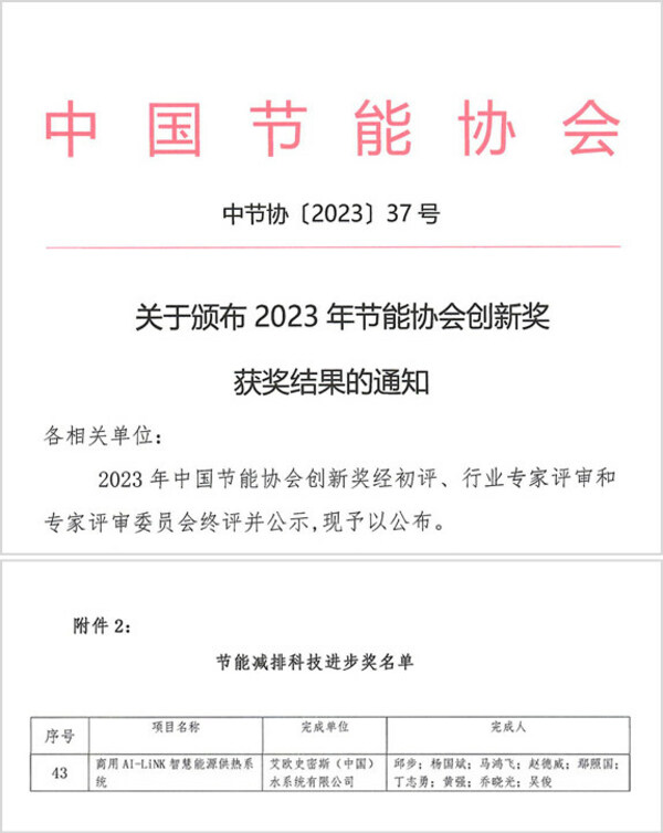 A.O.史密斯适时推出AI-LiNK智慧能源供热系统,根据用热需求、环境温度、能源价格、系统状态等因素,将能源设备高效耦合,以节费或节碳策略控制设备运行状态,在保证供热质量的同时,实现全生命周期建筑供热成本更省,助力国家节能减排。此次荣获"节能减排科技进步奖",可谓是实至名归。