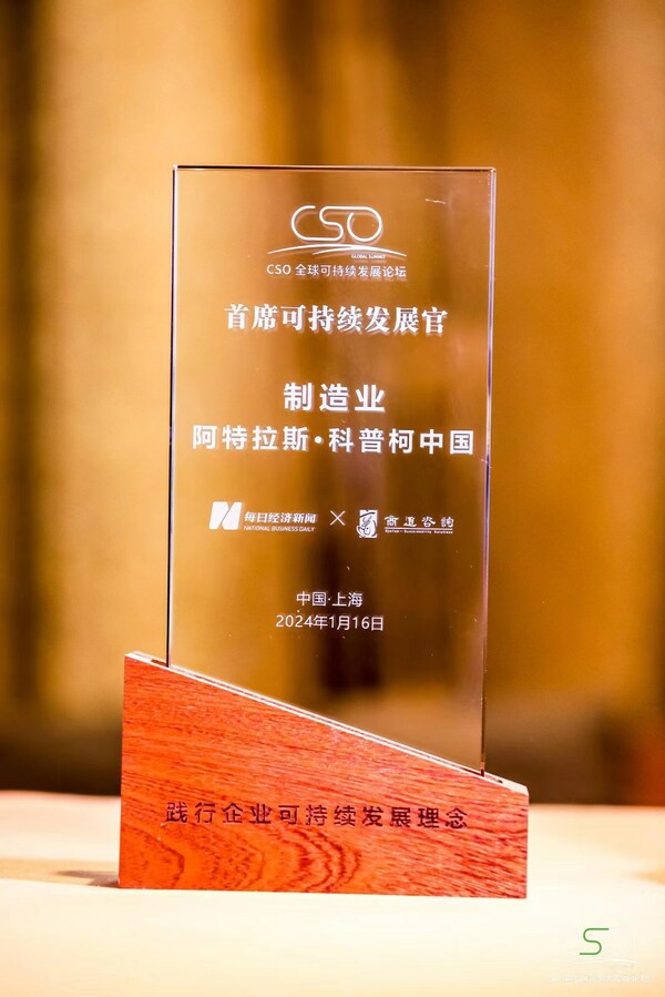 上海2024年1月17日 /新闻稿网 - Xinwengao.com/ — 1月16日,CSO全球可持续发展论坛在上海举行。峰会以"可持续,驱动未来商业"为主题,围绕气候危机的新语境、ESG管理与责任投资、无障碍职场建设三大议题,分享最新趋势研究和企业实践。峰会上,主办方揭晓了本届"首席可持续发展官"榜单。阿特拉斯•科普柯中国作为制造业代表,凭借在履行社会责任以及在ESG实践治理方面的突出表现和创新举措,与来自其他行业的九家头部企业一起获评2024年度"首席可持续发展官"企业。