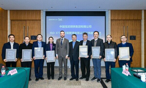 上海2024年1月19日 /新闻稿网 - Xinwengao.com/ — 近日,中国宝武集团总部、宝钢股份、马钢集团、太钢集团、宝武资源、宝信软件、宝钢包装、财务公司作为首批推进单位,获得了由BSI颁发的GB/T 35770-2022 / ISO 37301:2021合规管理体系国际国内标准双认证证书。