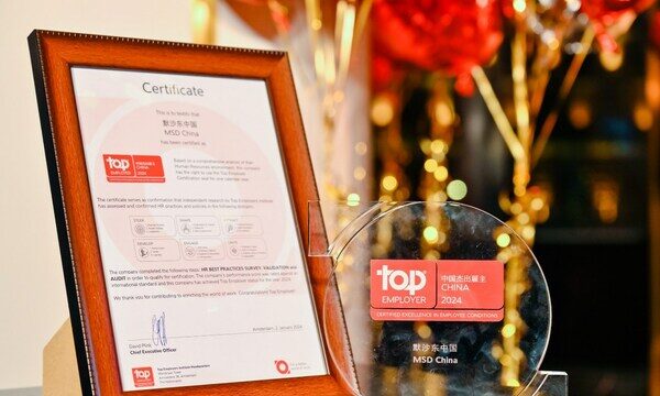 上海2024年1月19日 /新闻稿网 - Xinwengao.com/ — 近日,由全球权威的杰出雇主调研机构(Top Employers Institute)颁布的"杰出雇主2024"榜单正式揭晓,默沙东中国以出色表现荣膺"中国杰出雇主"。这一奖项认可了默沙东中国在人才策略、工作环境、人才招聘、学习、福祉、多元化与包容性等领域所做出的领先策略和实践。