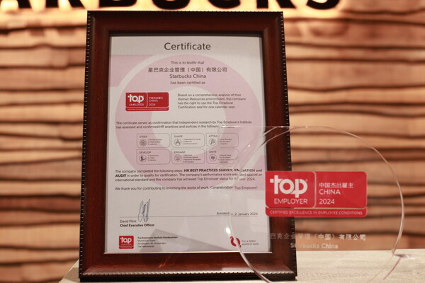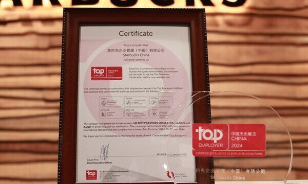 上海2024年1月19日 /新闻稿网 - Xinwengao.com/ — 今天,杰出雇主调研机构(Top Employers Institute)公布"2024中国杰出雇主"认证名单。星巴克凭借在多元化与包容性、可持续发展、领导力等多方面领先优势上榜。