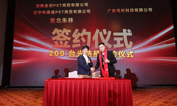 沈阳金创PET商贸有限公司、辽宁中再循PET商贸有限公司、东北朱林与弓叶科技签订了200台光选机订单。