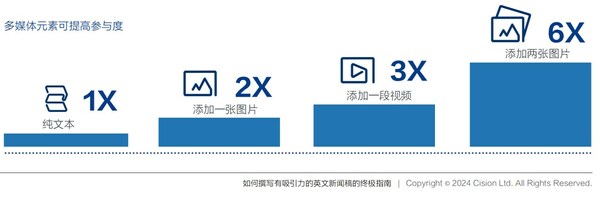 新闻稿网 - Xinwengao.com分析了通过我们网络发布的新闻稿的参与度,发现与纯文本新闻稿相比,包含各种多媒体元素的新闻稿更能引起受众的共鸣,参与度也更高。添加两张图片的阅读量是纯文本的六倍。