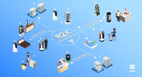 在本次合作中,普渡科技也首次提出R2X,即Robot-to-Everything的概念,形成机器人与周围环境、机器人与人、机器人与机器人之间的相互协同。通过建立统一的协议和标准规范,降低不同厂商机器人的协同门槛,实现服务机器人与包括梯控在内的IoT生态有机联动,为客户提供更加丰富的解决方案,为行业创造新的增长曲线。
