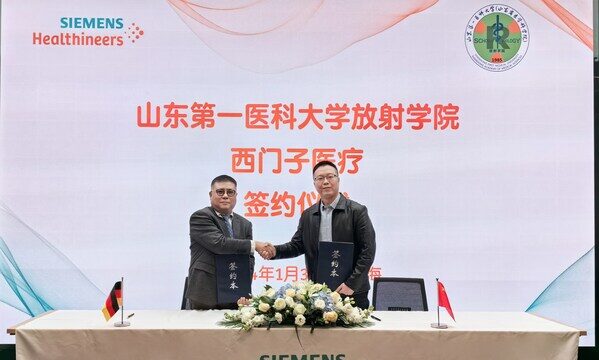 上海2024年1月30日 /新闻稿网 - Xinwengao.com/ — 今天,西门子医疗与山东第一医科大学放射学院签署战略合作框架协议,双方将依托优势资源,携手打造医学影像人才培养高地,助推中国医学教育和医疗卫生事业的可持续发展。西门子医疗东一区及大客户集团副总裁彭涛、山东第一医科大学放射学院院长邱建峰等双方领导出席签约仪式。