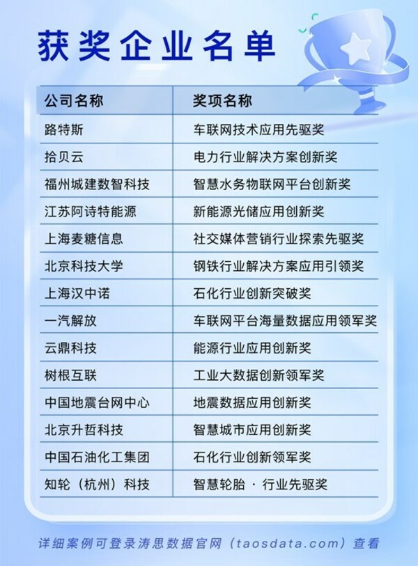 进入 www.taosdata.com 查看获奖应用的详细解决方案。