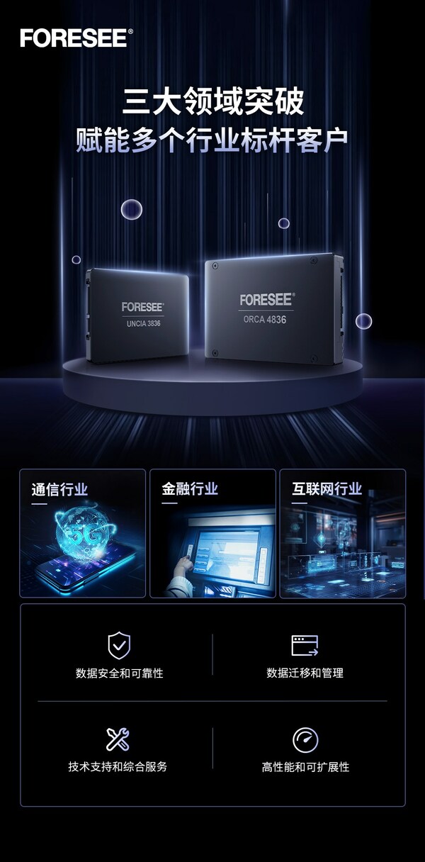 深圳2024年2月6日 /新闻稿网 - Xinwengao.com/ — 自2023年1月江波龙首次发布企业级存储产品FORESEE ORCA 4836系列NVMe SSD与FORESEE UNCIA 3836系列SATA 3.2 SSD以来,企业级存储产品于过去的一年中,在技术研发和市场应用中取得了显著成果。 拓疆企业级存储 屡获市场认可 江波龙企业级存储产品凭借其卓越的技术实力和性能表现,为企业级存储市场注入新鲜活力。截至2024年2月,FORESEE ORCA 4836系列NVMe SSD与FORESEE UNCIA 3836系列SATA 3.2 SSD两大产品已顺利完成鲲鹏、海光、龙芯、飞腾、兆芯、申威等国产CPU平台服务器的兼容性适配,实现主流平台的无缝接轨。此外,两款产品均已实现批量量产出货,广泛应用于通信运营商、金融、互联网等多个行业领域,终端客户包含京东云、联想、BiliBili等知名企业。 随着5G、物联网和云计算等技术的快速发展,企业级存储产品在通信运营商、金融和互联网服务等领域发挥着越来越重要的作用。这些行业需要存储大量的数据,并保证数据的安全性、可靠性和一致性。同时,还需要具备高性能、低延迟等特点,以满足业务的实时处理和访问需求。因此,江波龙企业级存储产品始终聚焦于深度定制和优化,不断加大在多种功能技术上的投入,以精准匹配不同行业和场景的实际需求。同时,江波龙还建立起完善的技术支持和综合服务体系,以确保存储产品的稳定运行和业务及时响应,进一步提升在这三大领域的市场竞争力。 自研高能固件 锻造硬核产品力 FORESEE UNCIA 3836系列SATA SSD基于国产企业级主控,并搭载国产128层TLC NAND颗粒,江波龙自主软硬件设计研发,产品覆盖从480GB至3.84TB的主流容量,可满足用户从系统启动盘至大容量数据盘的不同需求。 FORESEE ORCA 4836 NVMe SSD是江波龙企业级SSD团队自主研发的首款支持PCIe 4.0的高端产品。产品搭载3D TLC NAND闪存技术,早在开发之初,就针对性地加入了6~14W多档功耗调节、无感在线固件升级(<2s)、多命名空间(最大支持32个namespace)、可变Sector Size(5种扇区大小格式和5条数据流)等大量企业级应用场景功能。此外,该产品还支持Telemetry、Sanitize和全路径端到端的数据保护特性,高吞吐量、IOPS、低延迟以及优异的QoS特性使其在企业级读写密集型和混合型应用场景中表现出色,为客户提供全面、安全、可靠的企业级存储解决方案。 江波龙积极响应平台联动,与各方实现同频共振,共同扩展数据产业新生态。除了与主流CPU平台完成认证,FORESEE ORCA 4836企业级 NVMe SSD系列产品还顺利通过了腾讯云TencentOS Server及OpenCloudOS各项兼容性测试和运行要求,在腾讯云及主流服务器硬件环境下均可良好适配,并满足海量业务数据存储的需求。同时,也给腾讯云的相关业务和平台架构选型增添了更多选择,为未来双方的进一步合作奠定了坚实基础。 eSSD+RDIMM双布局 制造产能无忧 2023年,江波龙还推出了FORESEE AQUILA系列DDR4 RDIMM和DDR5 RDIMM企业级内存条,标志着公司企业级存储产品已形成完整布局。企业级RDIMM产品容量涵盖32GB、64GB和96GB,具备超低的失效率和数据错误率,为云计算、分布式存储、边缘计算等企业级应用场景提供有力支持。基于中山存储产业园的数据中心存储专线,利用多条业内先进的全自动SMT产线以及配套的自动化测试和包装产线,包括真空回流焊、在线3D X-ray检测等高性能、高可靠性设备,大幅提升了生产制造能力,确保eSSD和RDIMM产能供应。 随着创新技术不断涌现,江波龙将持续加大研发投入,积极探索企业级存储技术创新应用。未来,公司将以技术研发为驱动,以半导体存储品牌为载体,不断优化产品创新、品质保障和客户服务的能力,并携手合作伙伴共同推动企业级存储市场发展。