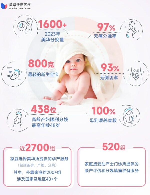 上海2024年2月6日 /新闻稿网 - Xinwengao.com/ — 近日,美华沃德医疗公布了其2023年度产科数据报告。 根据报告显示,上海美华妇儿医院2023年度总分娩量达1600+,其中包含了438位高龄产妇(最高年龄48岁),最轻的新生宝宝仅重800克。该医疗机构的无痛分娩率高达97%,顺产无侧切率为93%,母乳喂养宣教率100%。 *高龄产妇定义:≥35岁 上海美华妇儿医院2023年度产科数据 产科形势严峻 美华沃德医疗如何逆势而上? 据国家统计局数据显示,2016年全年出生人口为1786万人,但在随后几年逐渐下滑,2023年全年出生人口仅为902万人。在人口红利逐渐消失的当下,"产科寒冬"似乎正在悄然到来。 多学科专家团队 全方位守护母婴安全 全面二孩、三孩政策实施后,全国分娩量没有如期增加,但分娩群体中二胎、三胎比例增加,高龄孕产妇、复杂妊娠情况增多,产科面临更高要求。 针对此挑战,美华妇儿医院构建了多学科专家团队,以提供全方位孕期医疗保健服务。定期开展产科急救演练,并通过国内高水平的妇产科临床培训平台提升医务人员处理突发情况的能力。此外,医院拥有独立血库、三甲医院绿通、医疗顾问委员会等,并与20余家医院合作共建的产科专科联盟,全方位夯实高危妊娠诊疗水平,以确保母婴安全。 多学科合作成功救治早产双胞胎 医疗数据背后的卓越表现 美华妇儿医院秉承"让客人和其家庭主导自己独一无二的孕产旅程"的理念,为每位产妇提供充分的选择自由权。特别是通过VBAC(一胎剖宫产二胎顺产)、双胞胎顺产、臀位外倒转等专科技术,帮助想顺产的妈妈实现愿望。 美华永远将产妇的利益放在第一位。如通过固定的主诊医生诊疗组进行全孕期管理,全过程的分娩镇痛服务等。在保证安全质量和客户体验的前提下,提高催产成功率,降低会阴侧切和中转剖宫产率。 据2023年数据显示,美华的顺产无侧切率高达93%,分娩镇痛率达到97%,远高于全国医院平均水平。 上海美华妇儿医院产房 立足国际化,服务多元需求 作为一家高端私立医疗服务机构,美华妇儿医院致力于满足国际客户群体的多元化需求。 医院拥有国际化的多学科医疗团队,遵循国内外相关指南及产科最佳医院评审标准,制定符合国际标准的医疗服务流程,以满足中、外籍客户的需求。 在2023年,近2700组家庭选择了美华的孕产服务(包括备孕、产检和分娩),其中外籍家庭约有200多组,涉及国家及地区40多个。 守护新生,相伴而行 全生命周期医疗服务,满足全家庭医疗需求 在人口红利逐渐消失的大背景下,作为扎根上海20年的老牌高端妇儿品牌,美华沃德医疗在坚持高端孕产优质服务的同时,也在不断践行全生命周期医疗健康服务,从孕期到产后、皮肤医美、女性健康,从儿保疫苗到生长发育、儿童疾病……覆盖全家庭的医疗需求,为客户提供更加全面和贴心的服务。 全生命周期健康服务体系 通过种种举措,相信未来美华沃德医疗集团必将成为家庭医疗健康服务的领军品牌,为广大家庭提供更加全方位的医疗关怀。