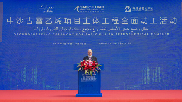 漳州2024年2月19日 /新闻稿网 - Xinwengao.com/ — 今日,沙特基础工业公司(SABIC)与福建省能源石化集团合资成立的福建中沙石化有限公司(福建中沙)在福建举行中沙古雷乙烯项目(SABIC福建石化综合体)主体工程全面动工活动。SABIC首席执行官阿卜杜拉哈曼•阿尔-法季出席活动,见证福建中沙开启全新篇章。