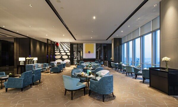 本次联名下午茶的灵感源于希博密黑金色调,邂逅非凡经典,奢享深邃神秘与尊贵辉煌,缔造优雅至美,感韵瑞士顶级滋养。重庆尼依格罗酒店甜品厨师长Johnny Xu以希博密的超级苹果精髓为灵感,融入希博密品牌经典标识,设计出极富创意且摩登时尚的下午茶。甜品包括融入黑白金主色系的黑巧芒果方块、汲取新鲜水果勾勒清甜之气的青苹果维多利亚蛋糕、以阿甘干细胞原料摩洛哥坚果为灵感的柠檬营养坚果、清爽口味的香草椰子泡芙,以及平衡口感的咸点青柠澳带佐青苹果啫喱、墨鱼汁华夫饼佐鳕鱼慕斯等等。在300米高空之上的城市之巅,约上知己挚爱一同品尝下午茶,安坐于此,聆听曼妙音乐,时尚甜点及经典香醇的调制咖啡相配,欣赏窗外壮丽江景,悦廊俨然成了山城时尚达人们的潮流聚集地。