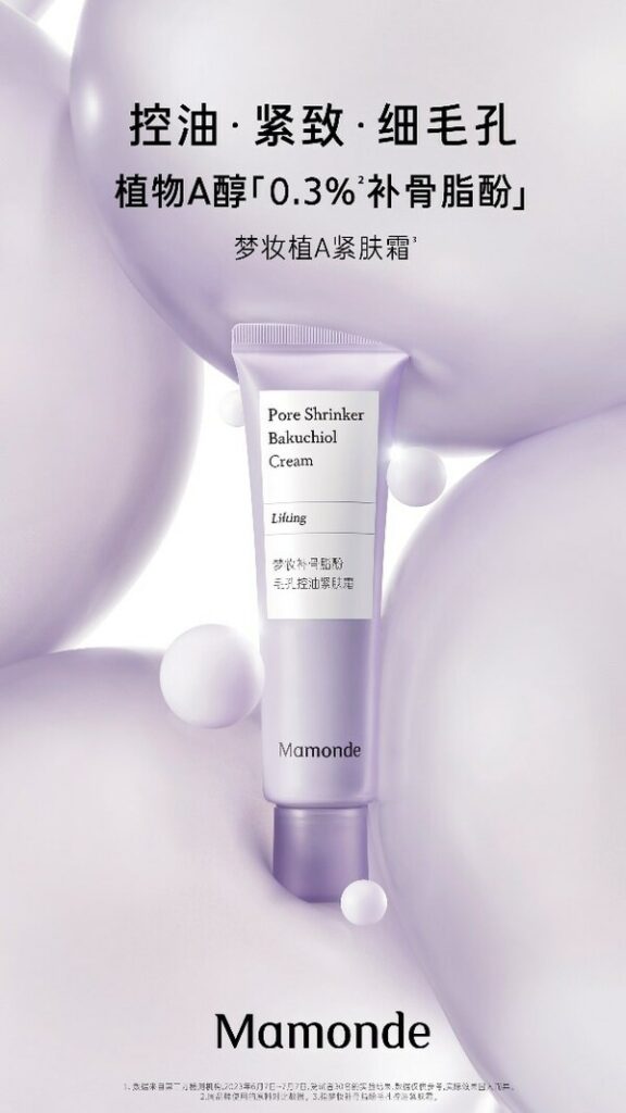 2023年9月,梦妆率先在韩国市场上市全新补骨脂酚毛孔控油紧肤霜,一经推出,就在连锁美妆集合店OliveYoung欧利芙洋霸榜当日护肤销量榜。韩式护肤理念下的消费市场已有较为成熟的"毛孔管理"产品赛道,货架上不乏视黄醇、发酵物等配方的毛孔护理产品,改善毛孔的需求不仅仅停留在清洁层面,而是需要通过控油+细毛孔+紧肤三管齐下,应对年轻消费者的初老痕迹。梦妆希望通过补骨脂酚毛孔控油紧肤霜的上市,将适合亚洲肌肤的控油+细毛孔+紧肤三合一的护肤概念推进中国市场。该款面霜沿用了韩国配方,仅在包装设计上略有差异。