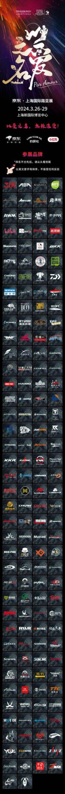 很多人都在说23年,市场卷的太厉害,就像寒冬腊月,步履艰辛。其实,这就是市场的一种规律,于大环境而言,并非坏事,寒冬意味着洗牌,洗牌就是给行业治病。23年,路亚品牌如雨后春笋一样的迸发,各色的廉价产品层出不穷。但又如同鲜花一般凋零枯萎。因为他们太急了, 不管品控、没有文化输出、 狂打价格战,想快速的割一波韭菜,最后被薄利低消的恶果打败。殊不知,消费者的眼睛是雪亮的, 他们的理智,仅仅会在一次上当后被唤醒。没有复购哪里来的生意?如今的路亚市场,日新月异。这是一个因循守旧者黯然退幕的舞台,同时又是一个创新思变者粉墨登场的舞台。路亚展倡导"以爱之名"的主题, 其实就是期待路亚品牌能够"文化先行,产品过硬",把热爱和情怀放进心里,把竞争力都放在产品、内容、模式上。因此2024年,京东•上海国际路亚展所有受邀的参展企业都是拥有良好的品牌积累或者是产品有竞争力的创新企业。从这个角度而言,也是看点十足。