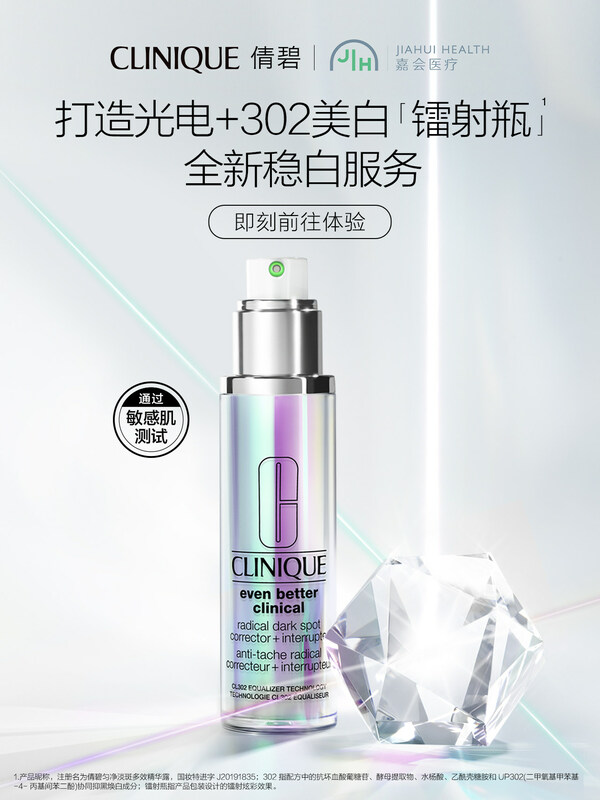 作为一款市面上少数通过敏感肌测试的美白精华产品,倩碧302美白镭射瓶也将入驻嘉会医疗皮肤科,配合302黑色素干预科技四段式全通路的美白矩阵,整个配方体系将美白链路环环相扣,全通路精准定向击退黑色素。让求美者能够在光电项目后体验专业美白护理,令返黑、暗沉及痘印等烦恼迎刃而解,令术后的脆弱肌肤亦能一路"稳"赢。