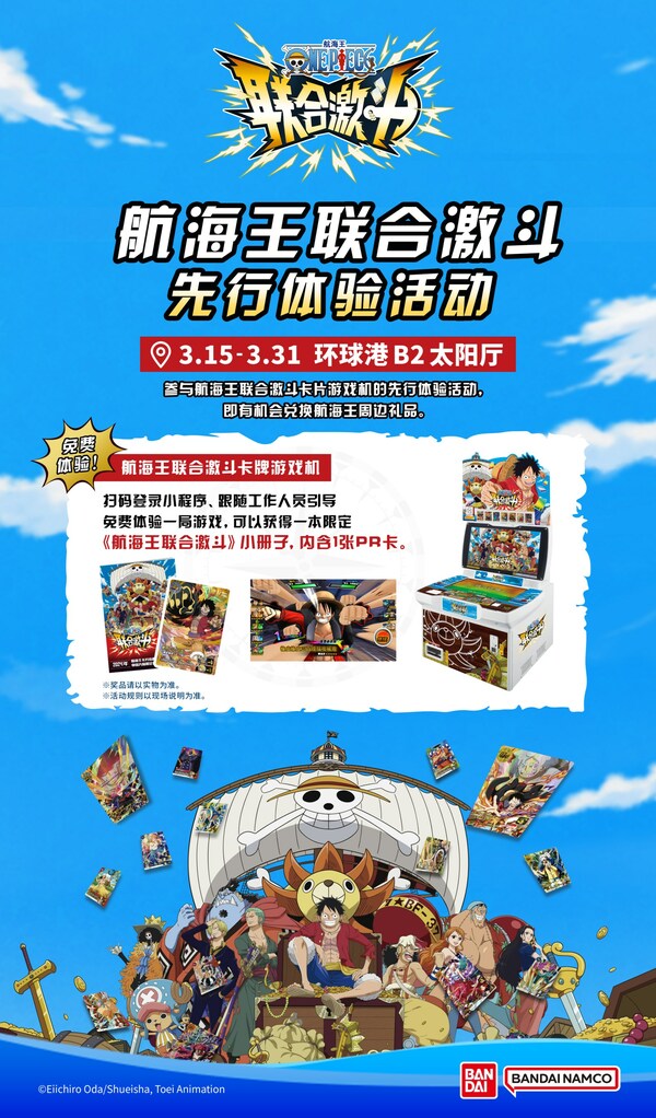 2024年3月15日至3月31日,上海环球港B2太阳厅,航海王联合激斗先行体验活动即将举行。