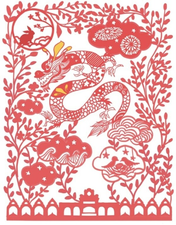 传承文化之韵,共赏剪纸之美。作为中国传统文化璀璨瑰宝,剪纸具有丰厚历史文化内涵,象征着人们对美好生活的向往。本次佛罗伦萨小镇特邀知名剪纸艺术家邱珈打造龙年剪纸IP,以生肖龙为主题灵感,将抽象的意式建筑作为画面基础,结合中国传统文化中的天干地支五行风水,森林意象,一年四季来连接各种画面元素,春天的鸟巢、夏夜的海浪、仲秋的圆月和冬季的烟花……四季的梦幻风景映射于云朵; 通过"鸢尾花龙"的形象展现佛罗伦萨小镇的时尚业态,不同于一般的全身鳞片的龙的形象,这条龙身着各式时髦印花,浑身布满格纹波点星星海波等时尚纹样,更以金色的佛罗伦萨小镇品牌Logo鸢尾花作为峥嵘头角,以精湛的传统艺术手法,表现剪纸艺术意蕴的同时,体现小镇 "新年有意思"的主题。邱珈擅长创作梦幻、优美且充满童趣的剪纸作品,在过去十多年间,她与众多国际知名品牌展开了艺术合作,包括 TASAKI、Sephora、Luxottica等。