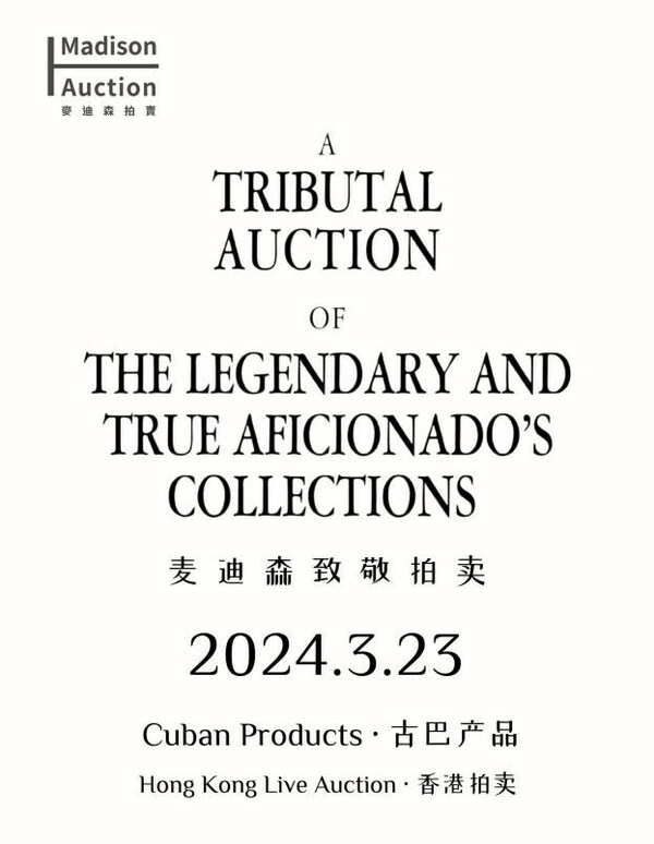 珍品林立星光熠熠 香港和北京2024年3月14日 /新闻稿网 - Xinwengao.com/ — 经过几乎一年的精心策划,麦迪森拍卖将于3月23日(周六)举行一场特别的古巴产品致敬拍卖。这场拍卖将呈现139组Min Ron NEE先生的藏品,价值约1,000万到1,800万港币。除此之外,本场拍卖还准备了精选葡萄酒及烈酒拍品,务求令大家满载而归。 这场拍卖在麦迪森拍卖平台 (www.madison-auction.com/auctions) 与麦迪森拍卖APP(在app store中搜索“麦迪森拍卖”)已上线,马上登陆并为您的心仪拍品出价预投标!3月23日早上11时开始,登录以上两个平台,收看拍卖会网络实时直播,参与竞投! 作为香港最博学的哈瓦那产品鉴赏家之一,Min Ron NEE先生的藏品堪称天花板级别。无论是进阶客,还是骨灰级藏家,面对极为罕见的保湿盒以及一系列停产品牌,都会找到心头好。 3月5日下午3:00开始,这场拍卖在麦迪森拍卖平台 (www.madison-auction.com/auctions) 与麦迪森拍卖APP(在app store中搜索"麦迪森拍卖")已上线,马上登陆并为心仪拍品出价预投标!3月23日早上11时开始,登录以上两个平台,收看拍卖会网络实时直播,参与竞投! 作为香港精品酒与珍奢品拍卖行以及亚洲唯一一家古巴产品拍卖行,麦迪森拍卖 (www.madison-auction.com) 致力于为全球尤其是亚太区的高净值客户提供最便捷的臻品拍卖。从估价到精湛的市场营销策略,提供行业较低的22.5%买家佣金,免去繁琐的手续。 祝您成功拍得心仪臻品! 拍品推荐 拍品编号 #30201盒,48根/盒,皮制保湿盒 | 38 x 152mm状态:完美 拍品编号 #30311盒,20根/盒,保湿盒 | 47 x 235mm状态:完美 拍品编号 #30441盒,50根/盒,贴标盒 | 尺寸:未知 拍品编号 #30741盒,10根/盒,卡纸盒,天然木盒 | 55 x 233mm状态:完美 拍品编号 #30771盒,25根/盒,滑盖盒 | 46 x 143mm状态:完美 拍品编号 #31121盒,25根/盒,贴标盒 | 43 x 170mm状态:完美 拍品编号 #31141盒,1根/盒,贴标盒 | 49 x 633mm状态:完美 拍品编号 #31352盒,25根/盒,金属盒 | 尺寸:多种尺寸状态:密封 拍品编号 #31391盒,50根/盒,贴标盒 | Size: N/A | 尺寸:未知状态:完美 1998 Jacques Selosse Millésimé Grand Cru Extra Brut1998 瑟洛斯 年份干型香槟 拍品编号 #391支1.5升 | 总体:完美 | 其他:于2008年3月6日除渣估值 HK$ 17,000 – HK$ 30,000 这组旧年份瑟洛斯年份香槟大瓶装于2008年除渣,无论稀有度、质量,还是收藏价值都是如今香槟界的天花板。 1985 Domaine Jacques-Frederic Mugnier Musigny Grand Cru1985 木尼艾酒庄 慕西尼特级园拍品编号 #1281瓶,总体:很好 | 液位:酒帽下2厘米,酒标:轻微窖藏坏标,美国进口估值 HK$ 12,000 – HK$ 20,000 1985 Domaine Jacques-Frederic Mugnier Musigny Grand Cru1985 木尼艾酒庄 慕西尼特级园拍品编号 #1291瓶,总体:很好 | 酒标:轻微窖藏坏标,美国进口估值 HK$ 12,000 – HK$ 20,000 1985 Domaine Jacques-Frederic Mugnier Musigny Grand Cru1985 木尼艾酒庄 慕西尼特级园拍品编号 #1301瓶,总体:很好 | 酒标:轻微污标,美国进口,木塞:轻微凹陷估值 HK$ 12,000 – HK$ 20,000 旧年份且状态理想的木尼艾慕西尼买少见少,1985更是勃艮第一个经典且颇具收藏价值的大年。 2000 DOMAINE DE LA ROMANÉE-CONTI ASSORTMENT2000 罗曼尼 – 康帝酒庄套装 拍品编号 #14612瓶,原木箱 | 总体:很好 | 液位:酒帽下1.5厘米或更高(罗曼尼-圣-维旺),1.2厘米或更高(李奇堡),其他完美| 酒标:极轻微污标,美国进口 | 其他:产量6,286瓶(罗曼尼康帝特级园)估值 HK$ 320,000 – HK$ 550,000 2000 Domaine de la Romanée-Conti2000 罗曼尼-康帝酒庄 Romanée-Conti Grand Cru (1)罗曼尼康帝特级园 (1) La Tâche Grand Cru (3)拉塔希特级园 (3) Échézeaux Grand Cru (2)依瑟索特级园 (2) Romanée-Saint-Vivant Grand Cru (2)罗曼尼-圣-维旺特级园 (2) Grands Échézeaux Grand Cru (2)大依瑟索特级园 (2) Richebourg Grand Cru (2)李奇堡特级园 (2) DRC套装历来都是拍卖会的焦点,一次得到勃艮第最顶级酒庄的全套作品,非常难得。 Springbank 25 Year Old Millennium Limited Edition云顶 25年 千禧年限量版拍品编号 #80391瓶,木质礼盒 | 总体:完美 | 酒标:美国进口,桶型:橡木桶,酒精度:46度,容量:750毫升 | 其他:单一麦芽威士忌估值 HK$ 24,000 – HK$ 40,000 Springbank 30 Year Old Millennium Limited Edition云顶 30年 千禧年限量版拍品编号 #80401瓶,总体:很好 | 液位:瓶颈底部,桶型:橡木桶,酒精度:46度,容量:700毫升 | 其他:单一麦芽威士忌估值 HK$ 30,000 – HK$ 48,000 Springbank 35 Year Old Millennium Limited Edition云顶 35年 千禧年限量版拍品编号 #80411瓶,木质礼盒 | 总体:完美 | 桶型:橡木桶,酒精度:46度,容量:700毫升 | 其他:单一麦芽威士忌估值 HK$ 38,000 – HK$ 60,000 Springbank 40 Year Old Millennium Limited Edition云顶 40年 千禧年限量版拍品编号 #80421瓶,木质礼盒 | 总体:完美 | 桶型:橡木桶,酒精度:40.1度,容量:700毫升 | 其他:单一麦芽威士忌 | WF 94估值 HK$ 40,000 – HK$ 70,000 Springbank 45 Year Old Millennium Limited Edition云顶 45年 千禧年限量版拍品编号 #80431瓶,木质礼盒 | 总体:完美 | 桶型:橡木桶,酒精度:40.1度,容量:700毫升 | 其他:单一麦芽威士忌估值 HK$ 48,000 – HK$ 75,000 Springbank 50 Year Old Millennium Limited Edition云顶 50年 千禧年限量版拍品编号 #80441瓶,木质礼盒 | 总体:完美 | 酒标:美国进口,桶型:橡木桶,酒精度:40.5度,容量:750毫升 | 其他:单一麦芽威士忌估值 HK$ 70,000 – HK$ 110,000 云顶为庆祝千禧年,曾推出一套从25年到50年的6瓶装威士忌,于1999年装瓶,50年的那款在1954年或更早蒸馏!云顶的藏家千万不要错过这套难得的云顶天花板。 1978 Port Ellen 40 Year Old Casks of Di