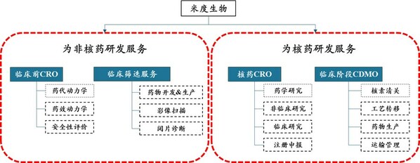 在核药领域,米度作为一家可以提供从早筛化合物到上市注册的一站式服务核药CRDMO,目前已助力20多个核药产品获得临床试验批件。米度可以为核药客户提供从药学研究、非临床研究、临床研究(I期-IV期)、注册申报等全流程一站式CRO服务,并为之提供临床阶段的药品工艺转移、工艺优化、生产运输等CDMO服务。