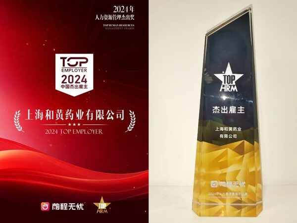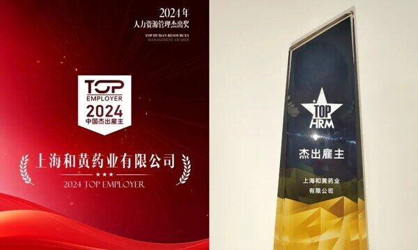 上海2024年3月20日 /新闻稿网 - Xinwengao.com/ — 日前,由国内领先的人力资源服务机构前程无忧主办的"2024人力资源管理杰出奖"评选结果揭晓,上海和黄药业凭借其优秀的人力资源管理实践和创新成果,从数万家企业中脱颖而出,荣获"2024中国杰出雇主"称号。