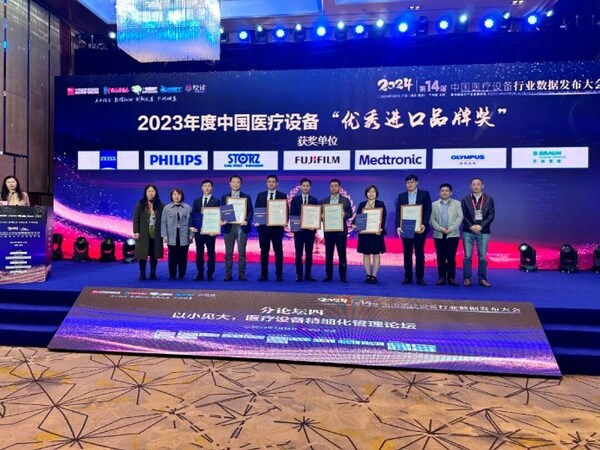 上海2024年3月21日 /新闻稿网 - Xinwengao.com/ — 2024年3月15-17日, "2024第十四届中国医疗设备行业数据发布大会"在北京隆重召开。富士胶片(中国)投资有限公司(以下简称"富士胶片(中国)") 在2023年度中国医疗设备行业数据调研活动中,凭借优异的成绩再度荣获"中国医疗设备’产品线第一名’"称号和"中国医疗产业‘社会责任奖’",并摘得"中国医疗设备’金人奖’" 、"中国医疗设备’优秀进口品牌奖’",富士胶片(中国)内窥镜系统事业部长樊丽君女士还获得"中国医疗设备’年度人物奖’"。