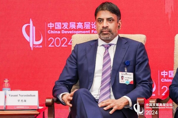 上海2024年3月25日 /新闻稿网 - Xinwengao.com/ — 3月24-25日,中国发展高层论坛2024年年会在北京召开。诺华首席执行官万思瀚(Vas Narasimhan)博士出席本次年会,并在"创新赋能健康产业"主题研讨会上发表演讲,就如何通过创新促进新质生产力的发展、建设有竞争力的医药创新生态系统、推动放射配体疗法等先进疗法的应用等话题,分享了诺华的洞察与实践,为推动中国医药产业高质量发展建言献策。这是万思瀚博士自担任诺华首席执行官以来第三次现场出席中国发展高层论坛。