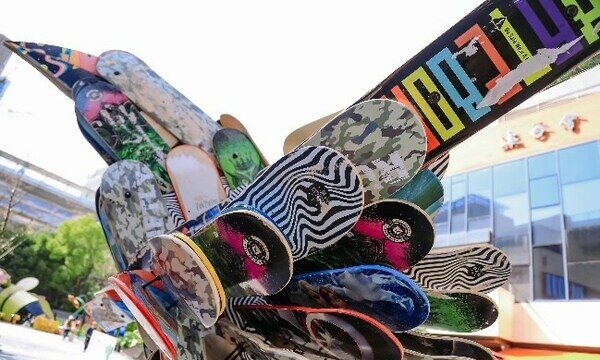 展品一:天地鸣响 地点:虹桥天地·新天地 B1 艺术家:奇想STUDIO 合作品牌:勇士滑板 |