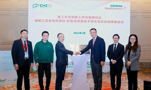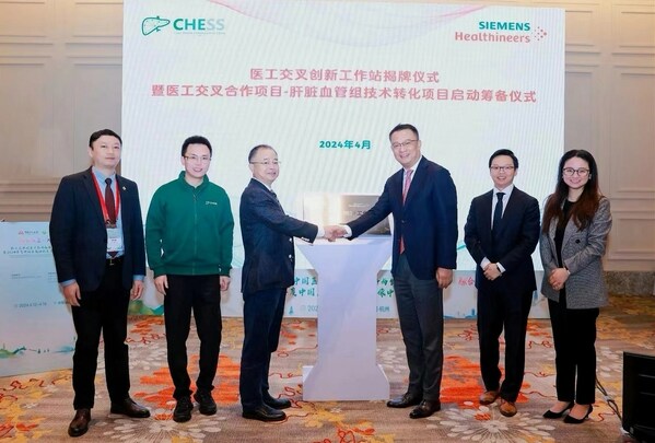 杭州2024年4月15日 /新闻稿网 - Xinwengao.com/ — 近日,由东南大学国家医学攻关产教融合创新平台赋能,CHESS肝脏健康联盟携手西门子医疗共同为"医工交叉创新工作站"揭牌。"医工交叉创新工作站"将落地西门子医疗上海创新中心。双方初步计划围绕慢性肝病的学科建设,探索医工交叉创新机制体系建设,促进科技创新成果的全面推广和临床转化。中国科学院院士、东南大学国家医学攻关产教融合创新平台负责人、东南大学附属中大医院院长滕皋军,CHESS创始人、国家高层次人才、东南大学附属中大医院院长助理祁小龙,东南大学国家医学攻关产教融合创新平台秘书长顾小春,西门子医疗大中华区总裁、全球领导委员会成员王皓,西门子医疗大中华区战略与业务发展及医疗企业服务与解决方案部总经理贾丹林,上海西门子医疗器械有限公司数字医疗事业部负责人山青等双方领导参加揭牌仪式。