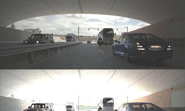 Sony IMX728 sensor simulation using an Anyverse Hyperspectral image as input. (Top) HDR on, (Bottom) HDR off.