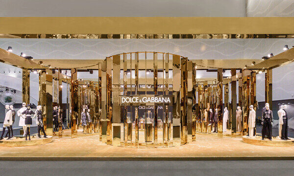 今年,杜嘉班纳延续意式传承,通过铺陈丰富多彩的展陈空间,致敬品牌文化之源。展台主色调为璀璨神秘的金色,展陈采用流线型的镜面镂空金属设计,巧妙分隔六大展区——从家居、美妆、皮具配饰、男女成衣到珠宝腕表,多维度立体呈现品牌一以贯之的经典美学风格。