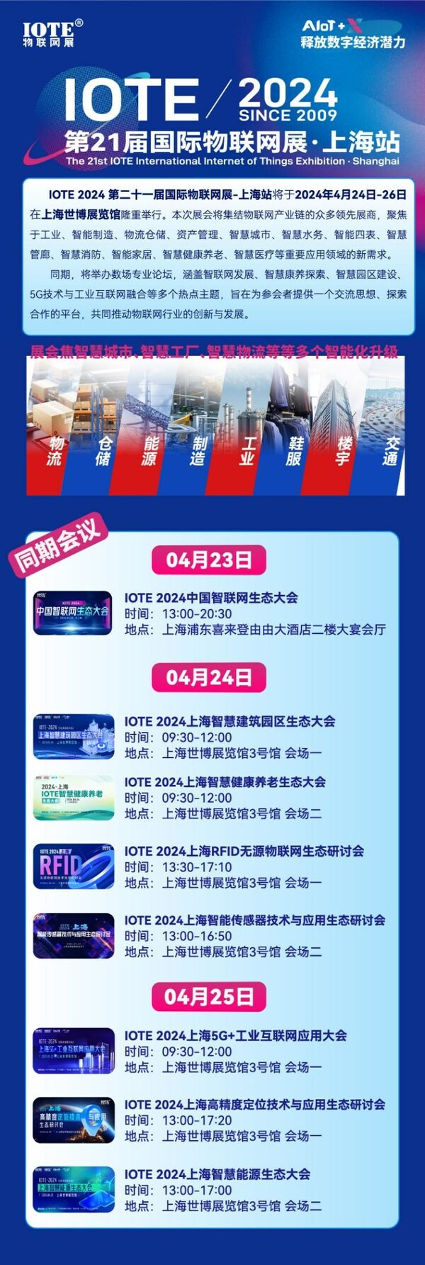 2024 IOTE上海物联网展参展商全景概览,4月24-26日上海世博展览馆 上海2024年4月18日 /新闻稿网 - Xinwengao.com/ — IoT已经成为推动全球数字化转型的一股中坚力量,逐年出台的政策在不断强调用AIoT技术加快我国数字经济与各类传统行业的发展,市场需求也在不断敲响数智化的门铃。2022年,我国物联网市场规模达到2.63万亿元,同比增长18%。预计未来三年,中国物联网市场规模仍将保持18%以上的增长速度,市场渴求迫切、发展机遇十足。 关键信息的交流传递是企业在所处产业内加速跑的一种外挂,而IoT行业的的特点是只知同行不可,了解行业上下游才能更有把握。2024 年4月24-26日,IOTE 2024第二十一届IOTE 国际物联网展•上海站将在上海世博展览馆3号馆拉开帷幕,届时RFID、传感器、高精度定位、通信、物联网云平台、物联网安全、大数据等众多领域的顶尖企业将齐聚一堂,共同展示他们在物联网领域的最新成果和技术,畅谈行业发展现状与未来版图规划。以下是各领域展商介绍,帮助各位伙伴展期直击目标企业。此次展会的官方媒体为物联网世界网。 IOTE上海物联网展 – 展商名录 无感识别,连接现实与数字世界——RFID展商 深圳市融智兴科技有限公司 深圳致明兴科技有限公司 深圳市鑫卡立方智能科技有限公司 珠海趣印科技有限公司 南宁新歌山电子科技有限公司 厦门爱印科技有限公司 广州康伴医疗科技有限公司 辽宁鹏瑞新材料科技发展有限公司 深圳市必应电子标签有限公司 上海铭奋电子科技有限公司 上海优比科电子科技有限公司 上海坤锐电子科技有限公司 厦门硕道物联科技有限公司 上海飞聚微电子有限公司 深圳市建和智能卡技术有限公司 聚辰半导体股份有限公司 江苏安智博电子科技有限公司 时尚科技(香港)股份有限公司 沈阳耀福施封锁有限公司 深圳市传麒智能电子机械有限责任公司 澳普物联(福建)有限公司 芜湖维聚智控科技有限公司 温州沸鼎智能科技有限公司 深圳市国芯物联科技有限公司 深圳市优领通软件技术有限公司 PHYCHIPS INC. 上海芯阅物联科技有限公司 深圳市瑞杰物联科技有限公司 泉州良皓电子有限公司 深圳市鸿陆技术有限公司 东莞市鸥思物联科技有限公司 宁波知行物联科技有限公司 深圳市联合智能卡有限公司 杭州卓羽信息科技有限公司 上海英内物联网科技股份有限公司 深圳市斯科信息技术有限公司 广东腾彩科技有限公司 东淑(上海)自动化科技有限公司 盈芯•联恒物宇科技有限公司 深圳市捷通科技有限公司 深圳市芯诚智能卡有限公司 上海舜识物联网有限公司 江苏康坦科技有限公司 深圳市万全智能技术有限公司 深圳锐驰物联科技有限公司 深圳市博纬智能识别科技有限公司 上海中卡智能卡有限公司 深圳市蓄腾科技有限公司 泰芯智能科技(昆山)有限公司 深圳迅捷无线科技有限公司 成都市迈德物联网技术有限公司 上海科浩信息科技有限公司 深圳市鑫业智能卡有限公司 深圳市芯联创展电子技术有限公司 惠州市顺驰智能科技有限公司 佛山市迪川电子科技有限公司 深圳市奇志智能科技有限公司 龙杰科技(深圳)有限公司 东莞市文标电子科技有限公司 浙江锦鸿源创科技有限公司 深圳市金海星智能有限公司 佛山市三水启瑞天通讯有限公司 东莞市爱卡智能技术有限公司 北京瑞弗艾迪科技有限公司 惠州德聚物联信息技术(上海)有限公司 深圳市东振技术有限公司 浙江嘉康电子股份有限公司 佛山澳信科技有限公司 杭州春笙物联科技有限公司 佛山市桥恩通讯设备有限公司 北京科宇金鹏自动化设备有限公司 深圳汉德霍尔科技有限公司 深圳市成为信息股份有限公司 广州市微嵌计算机科技有限公司 浙江雷丹科技有限公司 深圳市联芯物联科技有限公司 天津国聚科技有限公司 感知世界,智启未来——传感器展商 合肥皖科智能技术有限公司 冠群信息技术(南京)有限公司 杭州岸达科技有限公司 北京超显科技有限公司 深圳市海凌科电子有限公司 南京苗米科技有限公司 深圳市东振技术有限公司 杭州瀚联传感器技术有限公司 基康仪器股份有限公司 世电科技有限公司 上海宏太通信技术有限公司 厦门星纵物联科技有限公司 深圳空循环科技有限公司 石家庄科林物联网科技有限公司 嘉兴博感科技有限公司 北京腾锐视讯数字技术有限公司 精准定位,掌握每一寸空间——高精度定位展商 上海美迪索科电子科技有限公司 上海埃威信息科技有限公司 杭州品铂科技有限公司 江苏蓝策电子科技有限公司 深圳市蓝科迅通科技有限公司 深圳云里物里科技股份有限公司 世电科技有限公司 灵耀数智(苏州)技术有限公司 深圳空循环科技有限公司 位智物联科技(苏州)有限公司 图新智控(北京)科技有限公司 深圳市弘毅云佳科技有限公司 上海笃一物联科技有限公司 广州码石信息科技有限公司 苏州翼凯通信科技有限公司 信息高速,数据传递,让世界更紧密——通信展商 天翼物联科技有限公司 深圳市优克联新技术有限公司 杭州朗亦通科技有限公司 图新智控(北京)科技有限公司 深圳市蓝科迅通科技有限公司 河源市屹然电子科技有限公司 成都亿佰特电子科技有限公司 厦门计讯物联科技有限公司 深圳云里物里科技股份有限公司 苏州翼凯通信科技有限公司 深圳市海凌科电子有限公司 北京云软在线通信技术有限公司