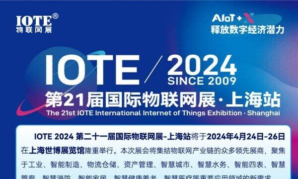 IOTE 2024第二十一届国际物联网展•上海站(简称:IOTE上海物联网展),2024年4月24-26日将在上海世博展览馆开展,汇聚全球超300+家参展企业、3万+来自工业、物流、基础建设、智慧城市、智慧零售领域的专业集成商、终端用户参观展会。IOTE 国际物联网展已成为物联网行业发展的风向标之一,为参展企业和观众提供一个交流创新、探索合作的平台。同时,在展会期间,更有8场专精领域论坛举办,共同探讨物联网技术的发展趋势、应用实践和未来机遇。这场科技盛宴,会见证物联网如何塑造我们的未来生活。