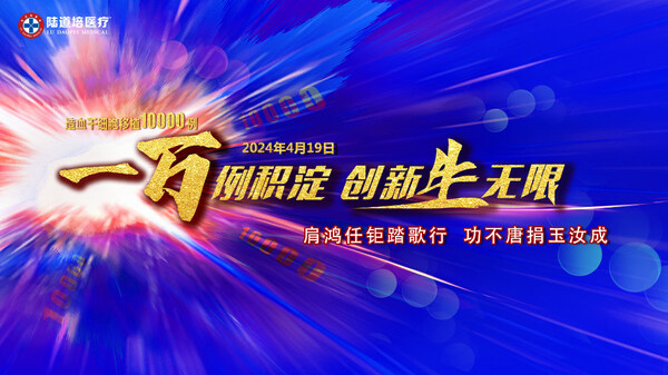 北京2024年4月23日 /新闻稿网 - Xinwengao.com/ — 2024年4月22日,陆道培医疗集团举办"一万例积淀,创新生无限"座谈会,纪念陆道培医疗集团造血干细胞移植突破一万例,历时12年(2012年~2024年),成为行业用时最短,达到10000例造血干细胞移植量级的医疗机构。