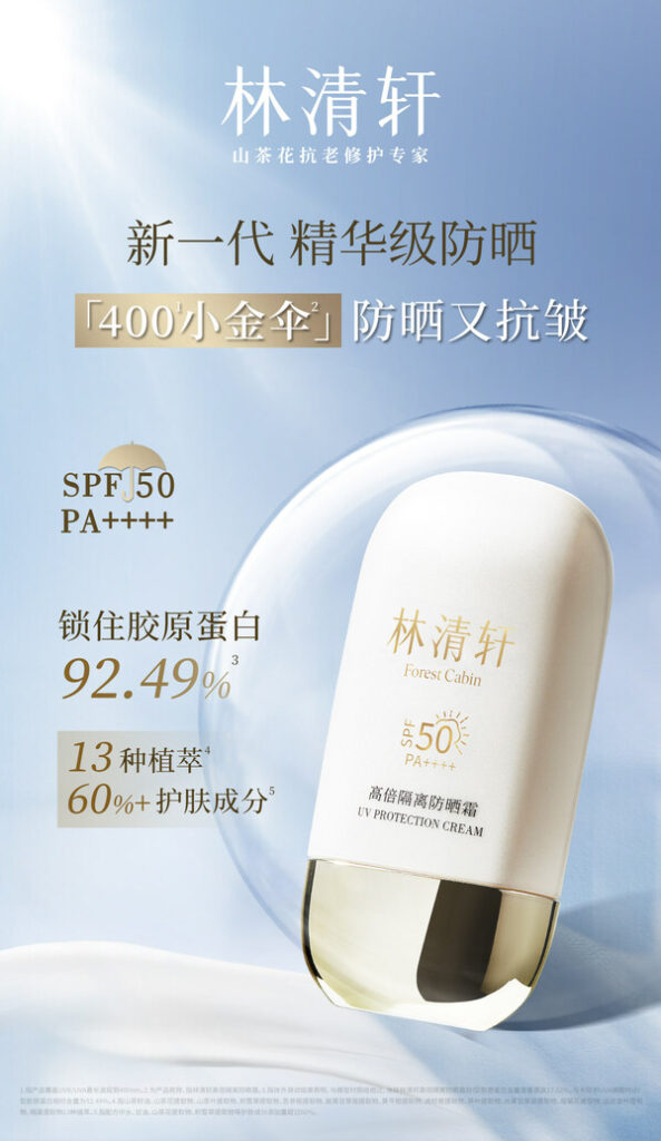 林清轩有21年的护肤品开发经验,早在十几年前就推出了第一款防晒霜,但作为山茶花抗老修护专家的林清轩,一直致力于用红山茶花天然精粹和科技做一款标杆级的防晒霜,研发团队历经4年打磨,反复测试,最终实现了让精华成分入防晒霜,不仅400广谱高倍防晒,暴晒不易晒黑,更实现了进阶的抗皱需求。精华级成分+精华级质地,「400小金伞」开创了防晒霜类目精华级高倍防晒新纪元。上市即售罄证明了消费者的认可,林清轩期待与消费者共同开启全新的防晒抗皱养肤之旅,让肌肤在阳光下自由呼吸,绽放最自然的光彩!