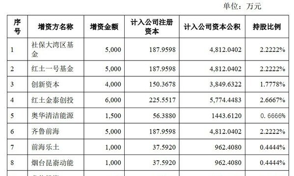 本次增资扩股各投资人出资认缴公司注册资本、计入公司资本公积、持股比例如下: