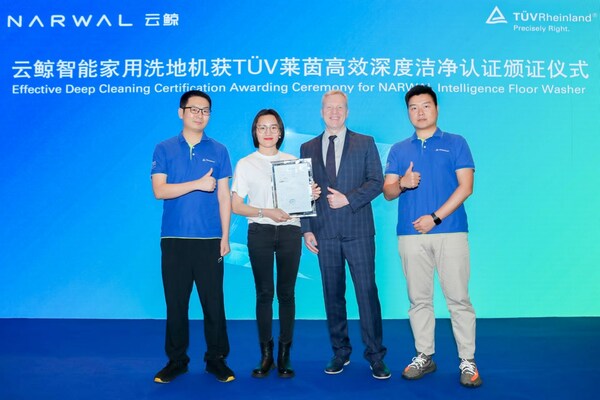为云鲸智能家用洗地机颁发高效深度洁净认证证书