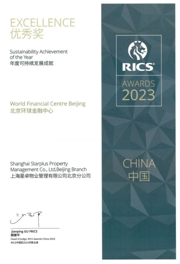 wfc以"绿"为发展底色,通过提升建筑设计中的节能减排效率、自然光与通风系统优化等,追求项目与环境的和谐共鸣。大厦智慧管理系统的应用落地,及内部空间改造的持续推进,更是在运维管理层面为项目提供了绿色解决方案,突出成效屡获业界嘉许,项目物业管理公司星卓物业于2023年获"中国物业服务ESG发展优秀企业"、"中国物业服务特色品牌企业-智慧绿色物业"等荣誉,wfc更是连续多年获得"RICS 可持续发展成就优秀奖"等。