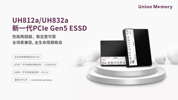 大会现场,忆联为与会伙伴重点展示了最新一代PCIe Gen5企业级SSD UH812a/UH832a,容量点覆盖1.6——15.36TB,对比上一代产品在性能、稳定性和可靠性等方面都有极大提升,可为AI应用场景带来更加出色的数据存储体验。