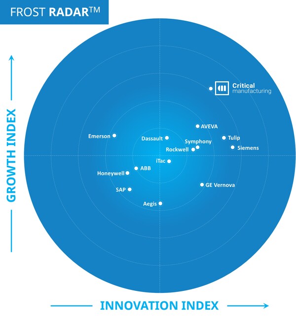 葡萄牙波尔图2024年7月5日 /新闻稿网 - Xinwengao.com/ — 领先的制造执行系统 (MES) 供应商凯睿德制造在 Frost & Sullivan 的 MES Radar™ 报告中获得了极高的荣誉。凯睿德制造 50% 的同比增长率使其在增长潜力方面名列前茅,并且在创新和行业变革方面也名列前三。