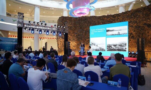 The photo shows the site of the 40th Anniversary, Discovery of Chengjiang Biota — International Palaeontological Forum. (Source: Yunnan.cn)