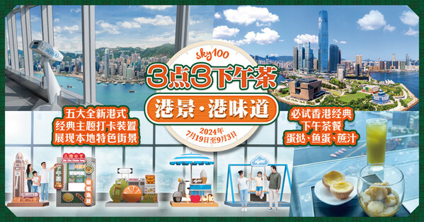 香港2024年7月10日 /新闻稿网 - Xinwengao.com/ — 天际100作为香港唯一最高的室内观景台,全天候提供居高临下的非凡视野,俯瞰香港全貌及维多利亚港,宛如迷你版的城市景观尽收眼底。今个夏日,天际100将于7月19日至9月3日举办"3点3下午茶–港景、港味道"主题活动,带领访客穿梭海拔393米的高空观赏壮丽天际线,体验独特的港式下午茶文化,观景台特设五大全新港式经典主题打卡位,糅合地道文化及人气小食的元素,展现传统冰室、闪耀霓虹灯和具有历史建筑的果栏等特色街景; 同时不可错过新推出本地特色下午茶餐及甜品,为炎炎夏日带来冰凉感觉。此外,天际100更联乘百年老字号店铺于周末"3点3下午茶"时段举办免费美食活动,让大家品尝滋味小食并认识港式下午茶文化。