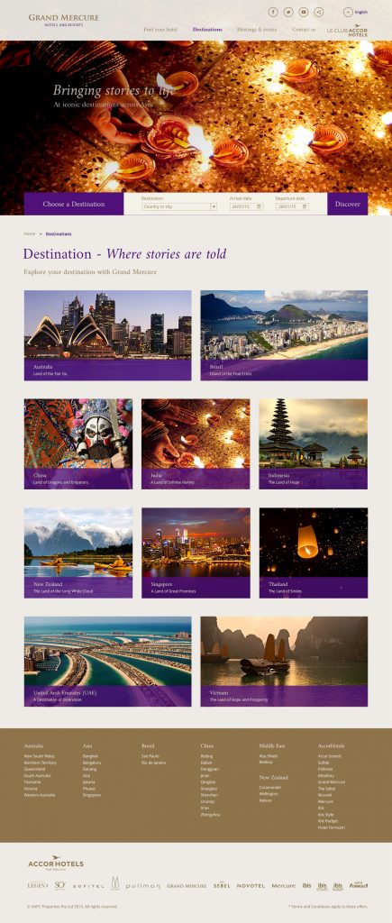 “Relaunching grandmercure.com is a significant milestone for AccorHotels Asia Pacific, because the brand was born in this region over 20 years ago,” said Graham Wilson, Chief Marketing and Distribution Officer, AccorHotels Asia Pacific. “Every Grand Mercure in our collection bears the distinctive culture and tradition of its destination, through our four brand pillars: Sense of Welcome, Sense of Food and Beverage, Sense of Wellness and Sense of Culture and Discovery.