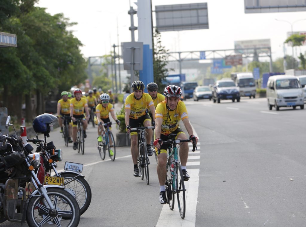 The team will ride 350 kilometers in the coming three and a half days with stops in counties of Heshan and Sihui and arrive at Sofitel Guangzhou Sunrich during noon time on Oct.31.